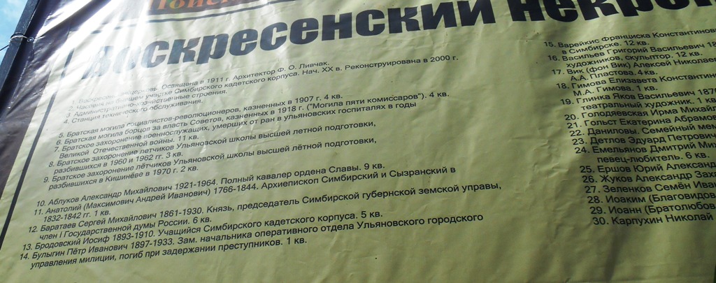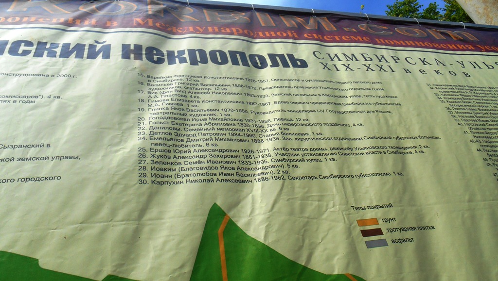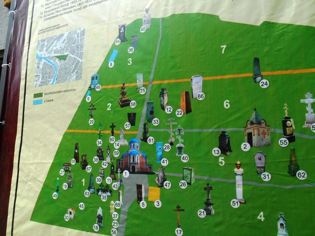К 135-летию кладбища, в 2009 году, краеведы хотели подготовить справочник по наиболее известным захоронениям, но, увы, из-за отсутствия надежд на финансирование этого сделано не было. Зато в 2011 дизайнер УлГТУ Юлия Гончаренко составила вот эту схему, которая в 2014 году была размещена при входе на кладбище.