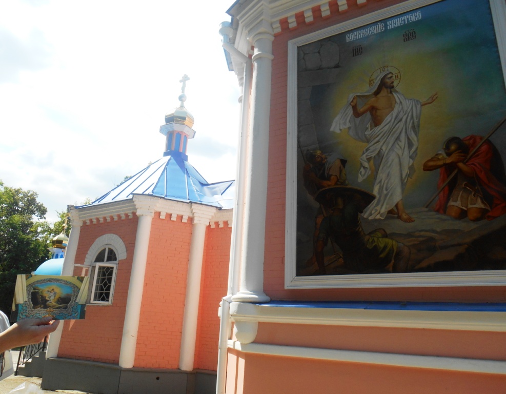 На алтарной стене изображено Воскресение Христово. Антон Шабалкин показал фотографию, сделанную им в Самаре в Покровском соборе: роспись художников Криволуцкого и Князева, очень похожую на роспись Воскресенской церкви. По мнению Шабалкина, скорее всего, художников или их учеников пригласили расписывать и наш храм.