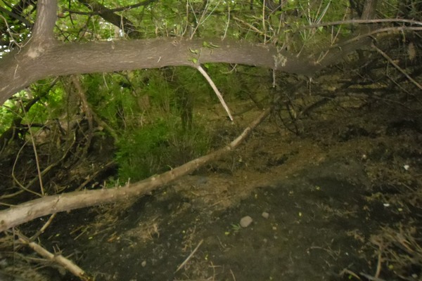Среди густой растительности нам удалось их отыскать. Списать правильной формы траншеи на естественные силы природы не получится – по склонам оврага постоянно сходит снег и стекает вода, что неизбежно приводит к их выравниванию. Может быть, траншеи и ямы – это следы земляных работ при обустройстве дренажной системы? Но и здесь возникают сомнения – траншеи продолжаются и там, куда в принципе не может добраться никакая техника…